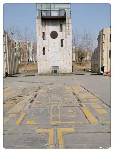 进入公园首先进入眼帘的就是三个巨大的石头建筑物。走近了才发现中间那个上书两个大字——永定,绝对是扣题!下面的地面上刻着金元明清北京城水系图。从地面漫步,顷刻间走遍了老北京