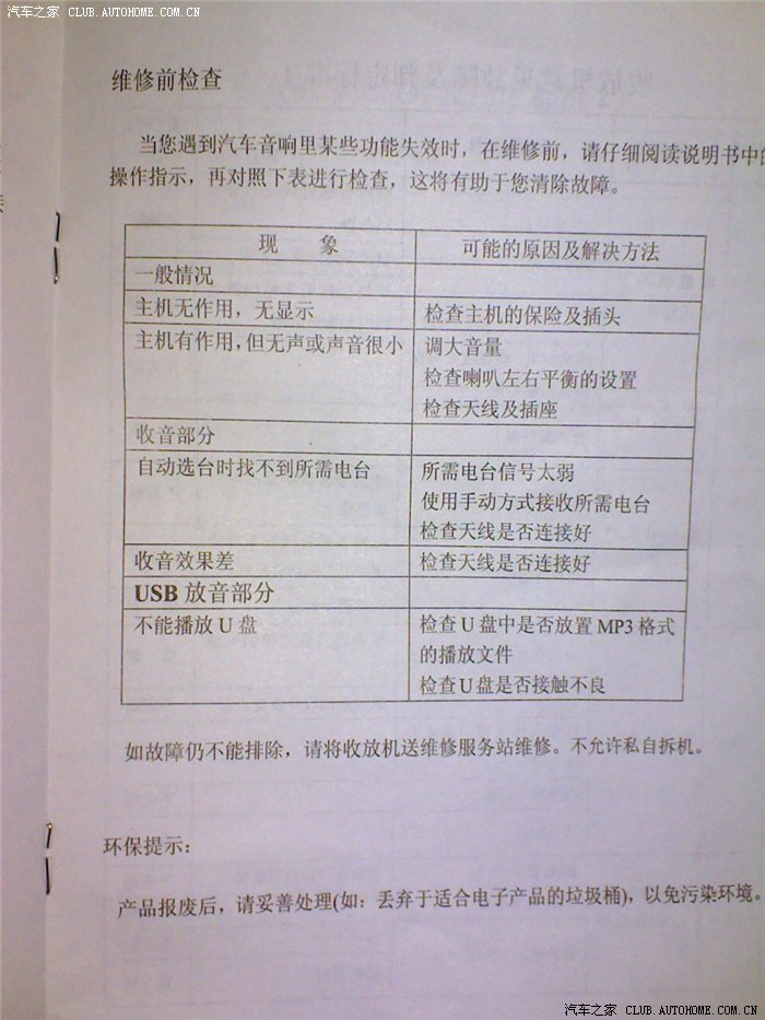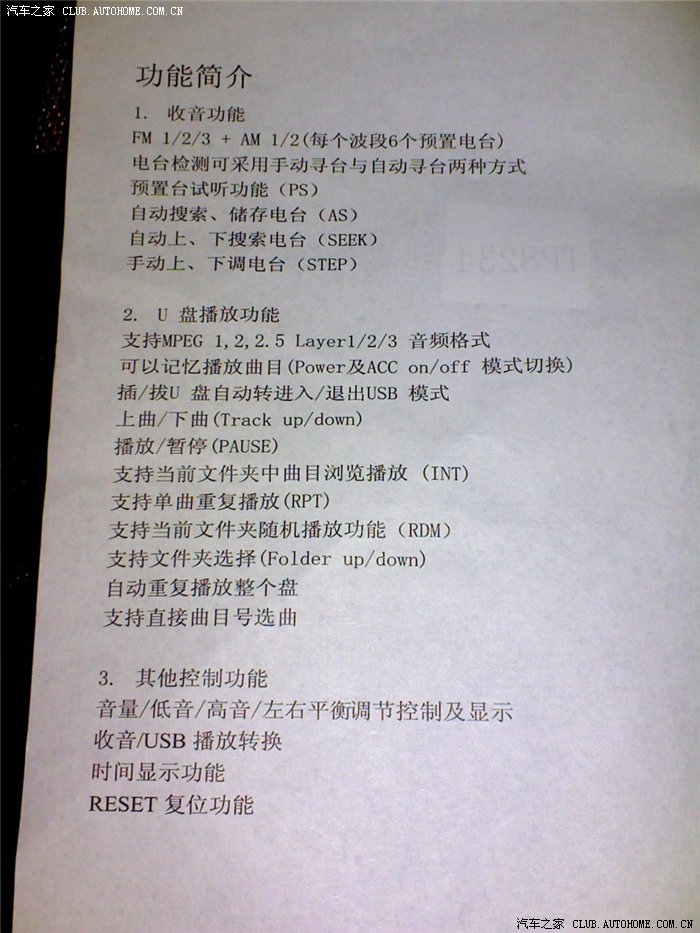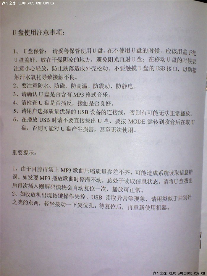下面1.3 FM+USB收音机使用说明书!请需要查看!(手机p990i拍摄效果一般,将就使用吧)