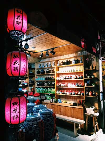 晚上的街道亮起了红灯笼,整个民宿也就我们和老板了