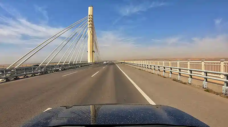 刚开过乌海黄河大桥就直奔沙漠公路了