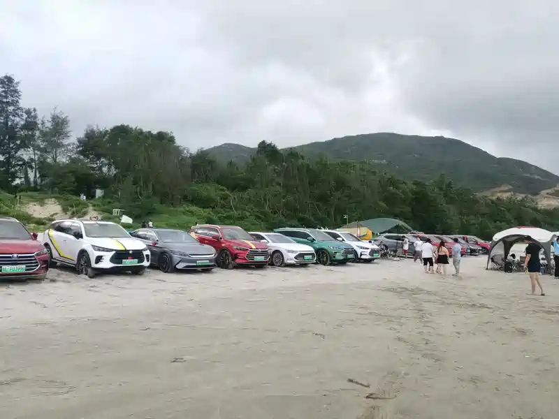 活动当天正好帐篷也到了,带上还未拆封的帐篷向组织奔赴。经过2小时的车程终于到达了目的地,一下到海边里吗就看到了组织,营地那一排的比亚迪贼好识别,下车后立马就感受到了车友们的热情,各种招呼吃喝,有种社死的感觉,哈哈哈。随着时间的推移也都慢慢的跟大伙活络了起来,开始分发礼品,准备晚饭一切都其乐融融。不得不说车友会的氛围真很好,在搭帐篷的时候还会来帮忙处理一些小困难,因为怕海水涨潮我把车往高处开时陷到沙地里趴窝,车友们都很在想着办法把车子救出来,不得不说这是个好组织值得跟随。总结下此次的活动很成功也很奈斯。