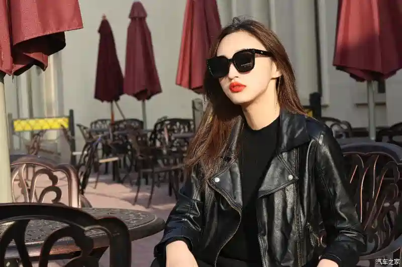今天是酷酷的机车女孩风,一身皮衣,一双酷酷的墨镜,再来个大红唇,完美。