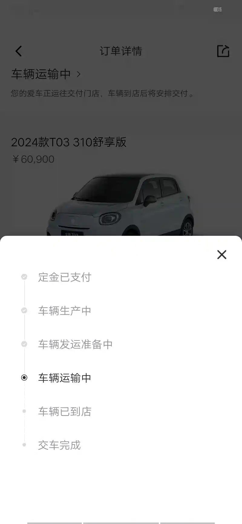 终于看见曙光了!!! 删除 取消推荐 置顶 取消置顶 关闭回复 打开回复 推荐编辑 楼主禁言 移动帖子 重置头像 操作记录 落叶33560 0浏览 · 2024-09-11 11:22· 发布于河北 8.6下定,8.7车辆生产中,9.3车辆发运准备中,9.11车辆运输中,估计下周一(9.16)应该就能交车啦.兄弟们,来对标啦 举报 打开汽车之家 阅读体验更好 精彩热门 更多 红旗H5提车作业分享 5年相伴二手小康厢货 坦克300VSBJ40越野PK 骓1200使用体验分享 摩托车运动相机怎么选 第一台弯梁的诞生 查看更多 打开汽车之家 互动体验更好 微信好友 微信朋友圈 新浪微博 QQ好友 QQ空间 取消 相关推荐 加载中