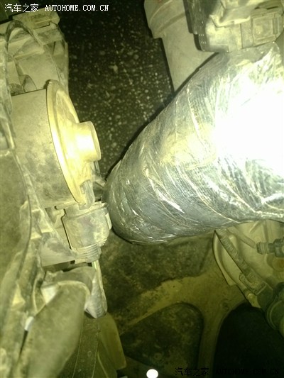 这是已安装一半的图片了,那个孔啊,身边没工具,乱挖的,搞得像老鼠啃一样,不过没开大,法兰硬塞进去的,然后用吃奶的力转到位,注意不要转到管子变形罗