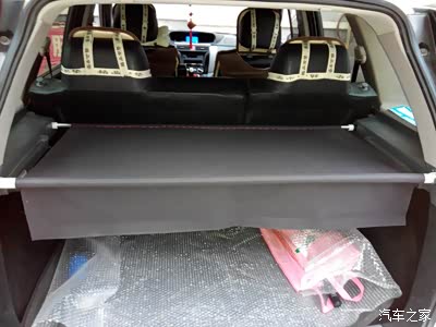 这张是自己改装的后备箱遮物挡,原车那个太笨重,装大物时不好卸及没地方,所以自己改成拆卸方便又轻巧的。
