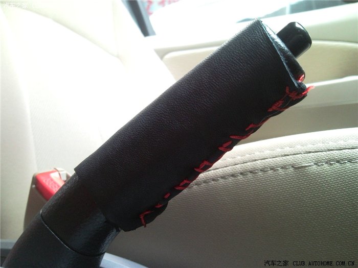 朋友做皮料生意,拿了点0.8mm厚的牛皮,准备做门板、方向盘包皮,首先剪了一点边角料,拿手刹做试验。手工实在不行,但手感不错。