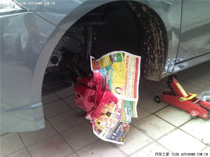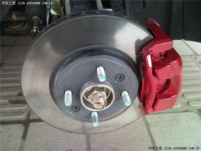 买了红色喷漆,把刹车毂喷成红色