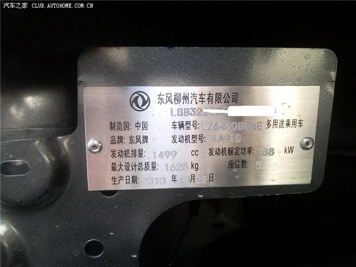先上铭牌,关于发动机功率有很多说法,铭牌上是88KW,但景逸的一致性书上写77KW,难怪会有争议声。同样景逸1.5的合格证上轮胎是205 55R16,但原车是195 65R15。