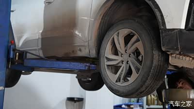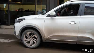 虽然轮胎上灰尘不少,但是五辐扩散式的轮毂造型,搭配上炫界运动感十足的车身,还是难掩车子本身的个性,215/55 R18的轮胎尺寸也十分大气。