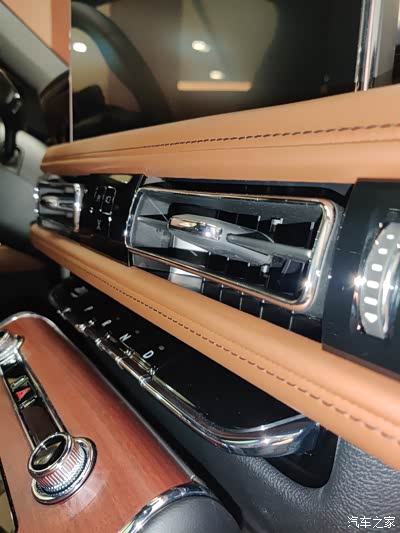 内饰的设计上,飞行家继续延续飞行线条的设计方式,视觉效果简洁清爽,层次分明。T型的布局方式传统但不失大气,大面积的暗红色皮革结合同色的实木饰板,视觉厚重,将奢华与高端融入其中,继续深层次诠释美式豪华。