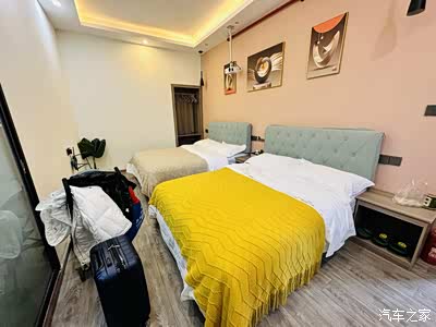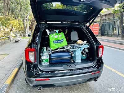把车塞得满满得,因为这次同时两台车出发,我们把3个行李箱都放到另外得一台车上了,我们车坐了6个人,把大探塞满