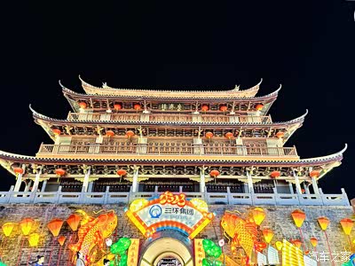 在艰难的步伐下,我终于挤到广济楼了,哇哇哇,好漂亮啊!,很大很大的一个门楼。晚上加上彩灯的衬托,格外漂亮,看着都不舍得移开眼球,广济楼有正反两面,两面都装饰得非常好看