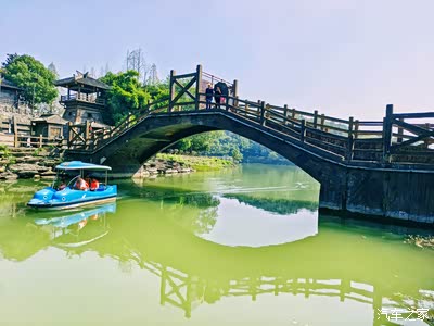 水塘对岸的草船借箭城楼里你也可以引弓亲身体验一把草船借箭。