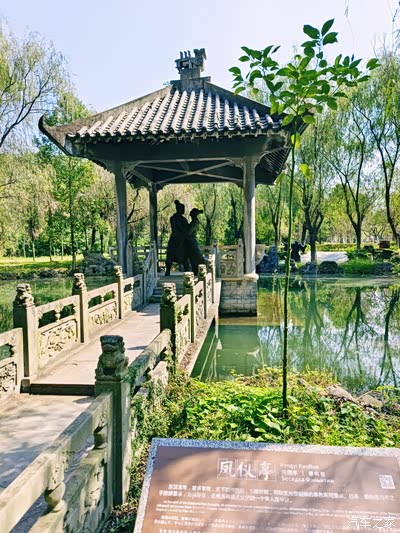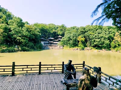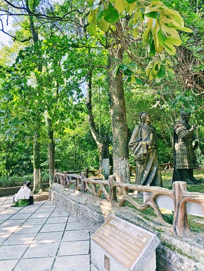 子敬塘边,诸葛亮和鲁肃的雕像再现了草船借箭的智慧!