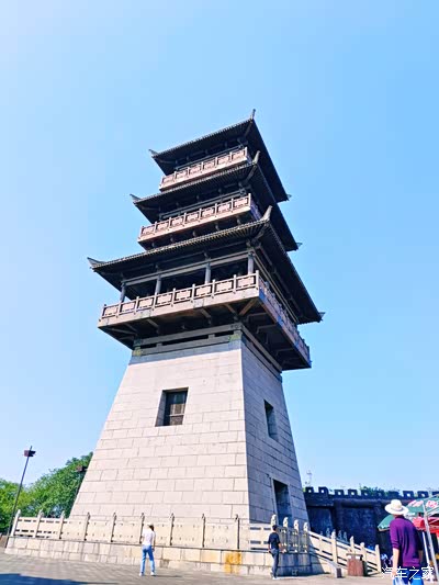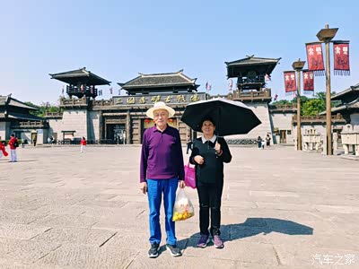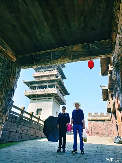 接近两个小时,顺利来到景区。景区仿古城楼下,拍照留影。