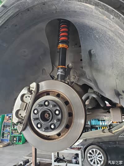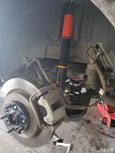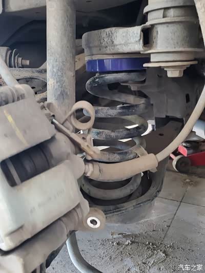 以上是第一次小改,但是弹簧垫块加上去,实在是有点硬,颠,他是属于提前压缩了弹簧,车从架子上落地的时候,车身自重会压下来一段,垫了垫块后,这段距离就很小了,他是这样升高车身的。所以开起来有点不舒服。