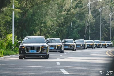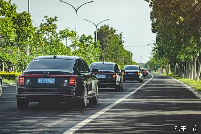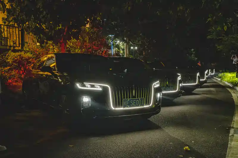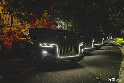夜晚的红旗H9车灯开起来真是一道靓丽的风景线哈哈哈哈哈那时候大家玩的都很开心 果然这优美的线条在夜里非常炫酷