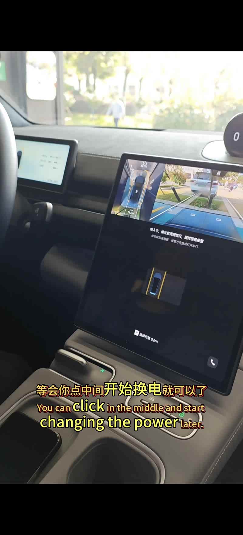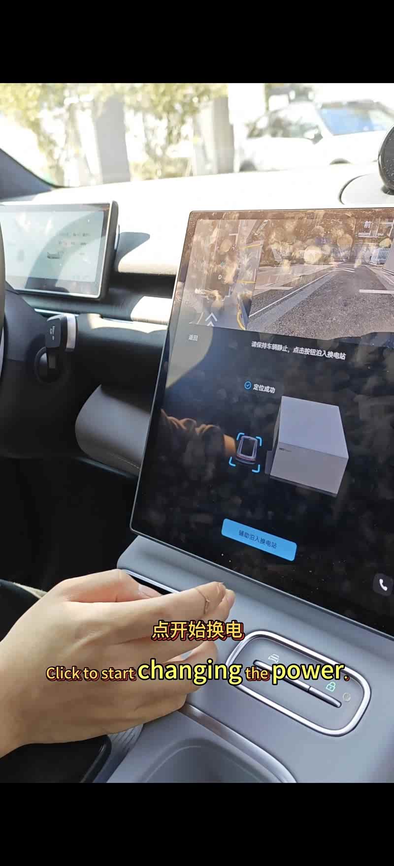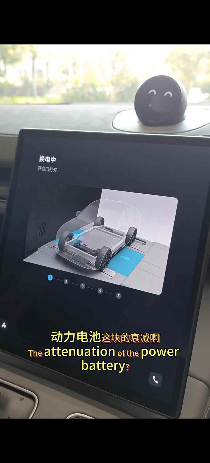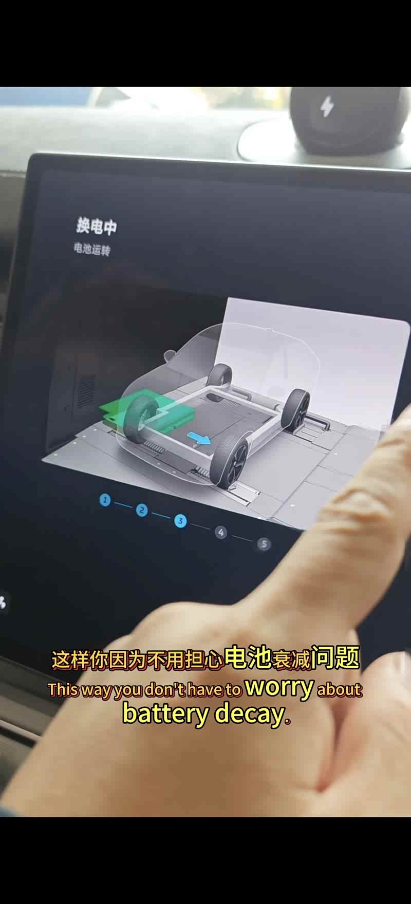 我让他开着我的ec6,来到换电站的时候换电站门自动打开了,把车停到停车方框后点击开始换电,一切就都自动开始了,经历了检测和换电的几个过程,3分钟左右就换了一块满电的健康电池!