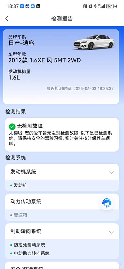 清除故障码后进行的全车检测结果!还有不少功能可以用,可以测试车的性能,我也在学着用阶段。