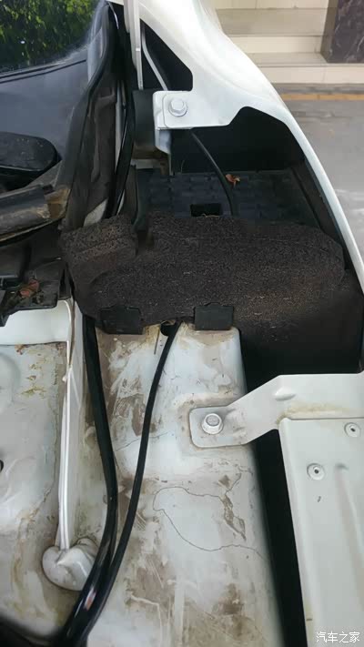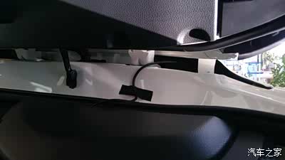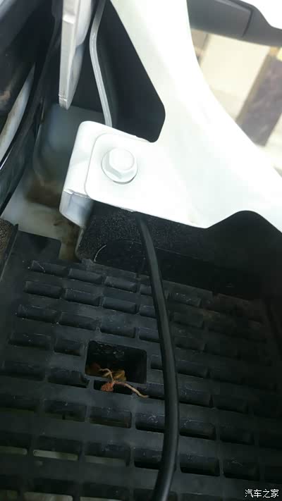 考虑到功率较大 直接电瓶取电 想从发动机舱穿线到车内 找不到合适洞洞 不过在机舱盖左侧支架旁边发现一处空洞