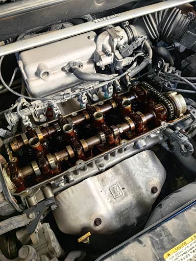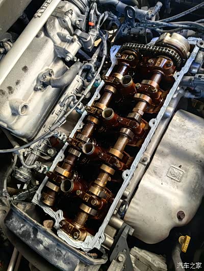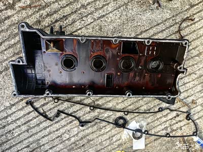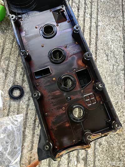 拆开的气门室,把原来的密封胶清理干净。