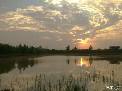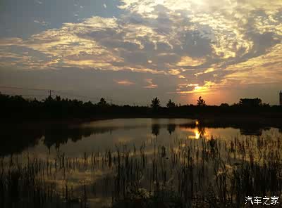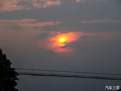 火红的日落,如同后尾灯一样,火烈一般