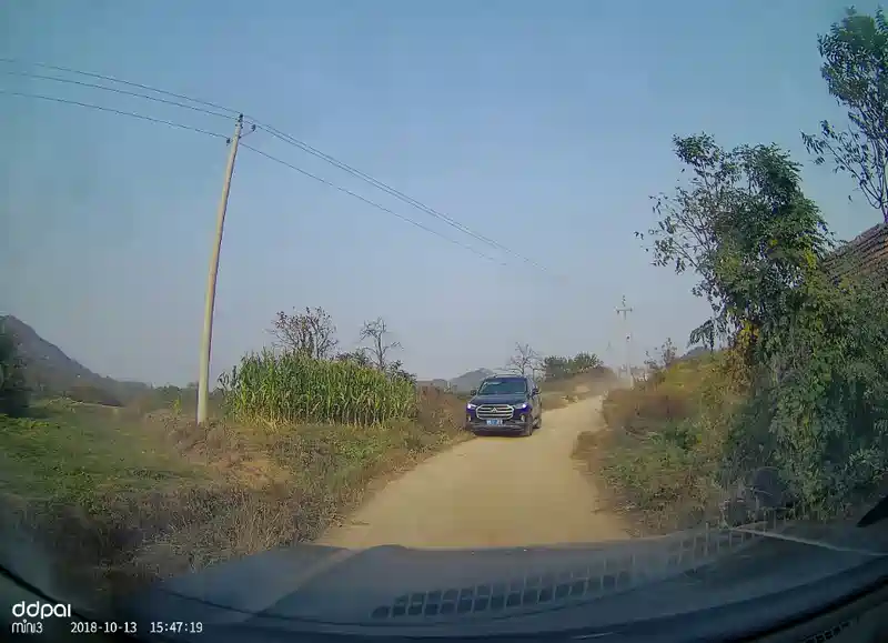 有点儿上当的感觉,我的轴距2米95,车长5米05。跑到大山里头来。