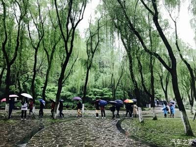 春雨绵绵,柳树下的游客都撑着伞,有点诗画江南的感觉