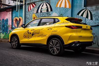 侧面造型运动时尚,因为皮卡丘的加持,车身更显时尚感,都是童年满满的回忆