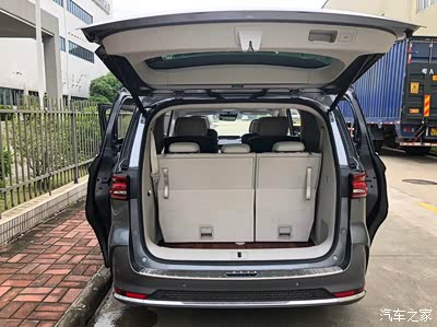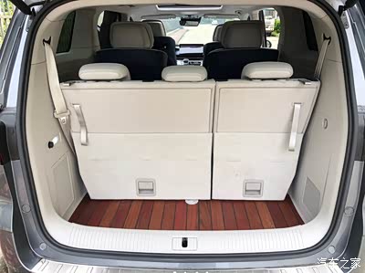 这是他的后备箱,自我感觉,如果把后排的座椅全部拉到最后的话,还是有点小的,如果一家七口全部坐进去的话,肯定要把座椅拉到最后,这样的话放行李的空间就不是很多,
