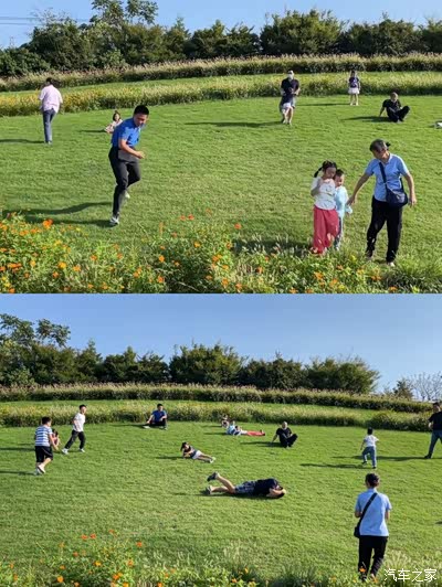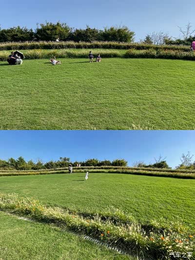 花开海上的草坪很多,居多,发现一个有坡度的,简直了,一起滚草地了!
