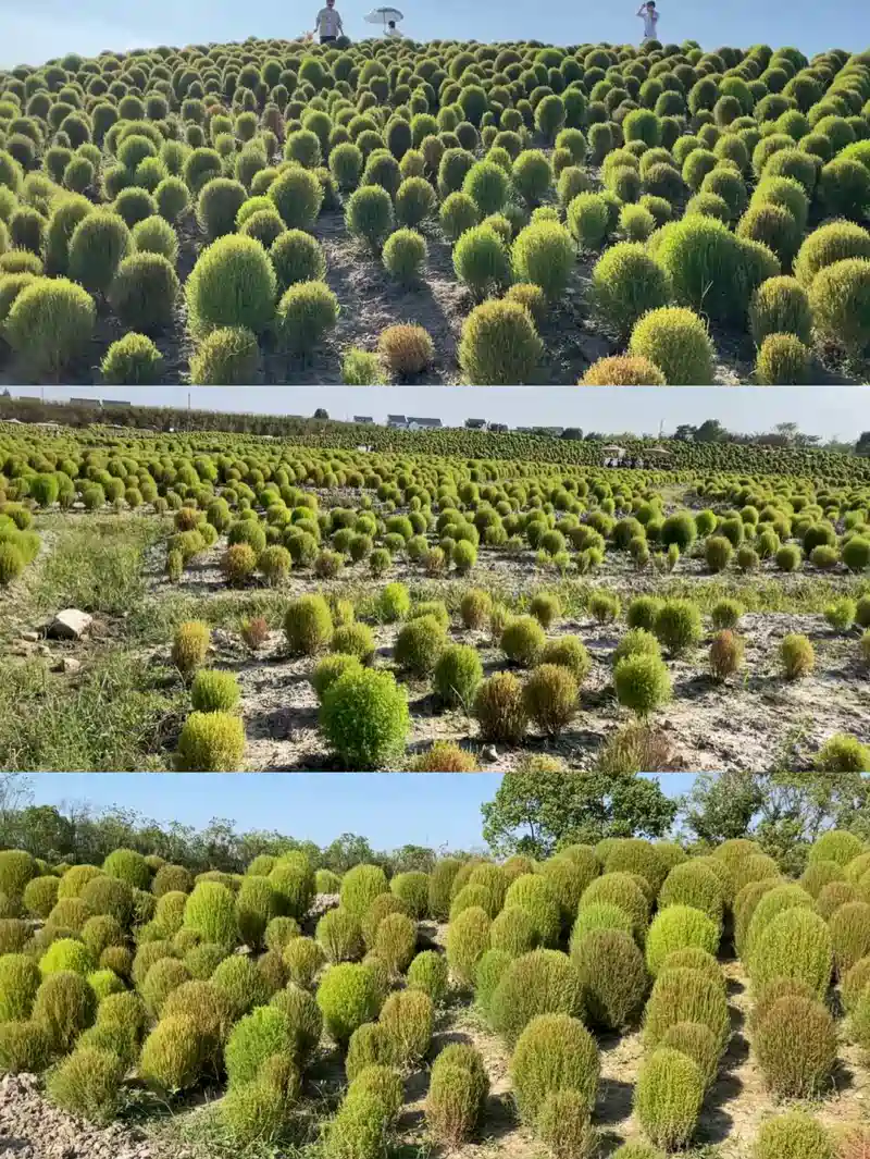 现在刚好是地肤毛球的盛开期,随着秋季温度的变化,毛球会从绿色变成红色。
