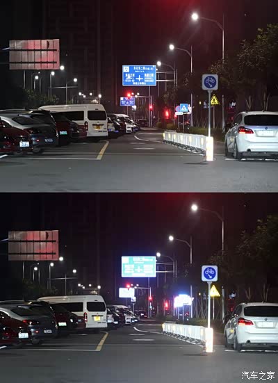 开启远近光后的效果对比,矩阵式LED的照度实在强悍。