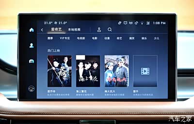 中央的12.8英寸中控立屏应该算除个别国产新能源车以外尺寸最大的了(AION S PLUS的为14.6英寸、比亚迪汉的为15.6英寸),其余绝大部分车型普遍都是12.3英寸;屏幕显示效果相当细腻,分辨率很高,尤其在天气界面模拟的动态雨滴效果十分逼真;此外其还预装有爱奇艺影片库,用它看剧无疑能获得比其他车更好的观赏体验。