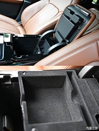 由于最新款林肯车使用的均是电子换挡机构,这就为前排中央留出了很多可利用空间,航海家将这部分做成了双层储物格。虽然意图是好的,方便用户在取放不同类物品时更好做区隔,但随之而来的弊端就是下层大储物格的开口被座椅边缘挡住了大半;本来这个容量是可以轻松放入一个女士手包的,但以现在的状态看,操作起来会很困难;即便是拿放一些小件物品(如手机),也不太好把手完全伸进去。