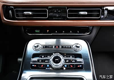 主功能控制台采用质感十足的拉丝铝材质,配合高亮黑色的按键很有美式格调;物理按键+触摸大屏的中控形式是美系车偏爱采用的。