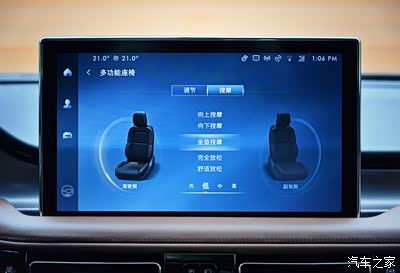 当拨动座椅调节键时,中控屏会同步切换至座椅功能界面,之后可通过触屏更直观的去做调整。