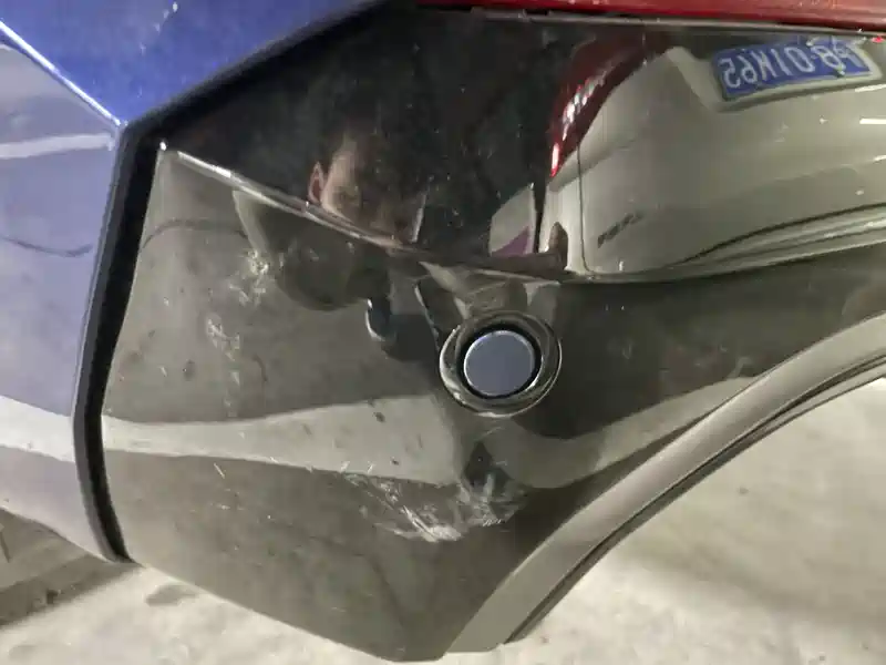 前杠雷达没塞好,后半部分有2-3mm的缝隙。后来师傅们还是塞不进去,我想了个办法先放胶圈,再塞雷达,成功合缝,完美解决。