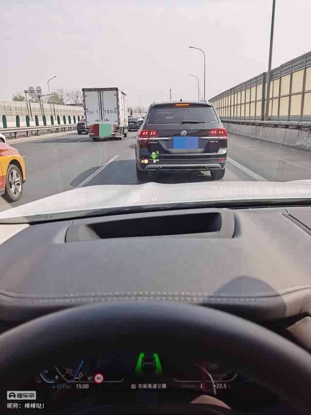 整体驾驶质感还不错,跟油车体验差不多,如果想要跟油车完全一样就需要把 D 档下的能量回收直接关闭,我选的自适应,前面没车就滑行,有车的话就带点能量回收的制动效果,看个人习惯。
