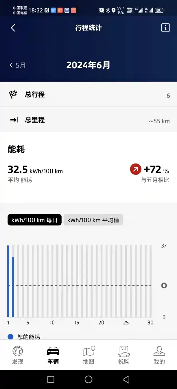 现在这几天是30kWh/100 km左右,比平常夏天快翻一倍,且比冬天还高出那么多。