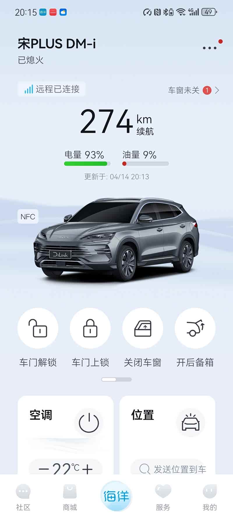 我们这代人也没开过什么高级车,这宋Plus开起来感觉是太舒服了,老夫才疏学浅,辞不达意,不知道如何形容这种感觉,方向盘轻松自如,动力强劲,起步提速超车太给力了,这智能控制用起来太方便了,就像导购小伙子说的,“会说话就行”一喊小迪让干啥干啥,比外孙子好使唤,什么开空调,调温度,开天窗,上翘,开闭车窗,改外循环打开关闭车窗,简直太得劲了。