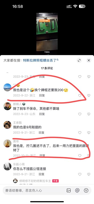 我只是千千万万的特斯拉小车主之一,普普通通的老百姓,我相信不止我一个人遇到了这种小问题,很多朋友选择了忍气吞声,自掏腰包200认倒霉,可你知道,每一次忍让都是对罪恶的助长!品控不好,错了就是错了,有几个牌照框可以随便一拧就坏的?