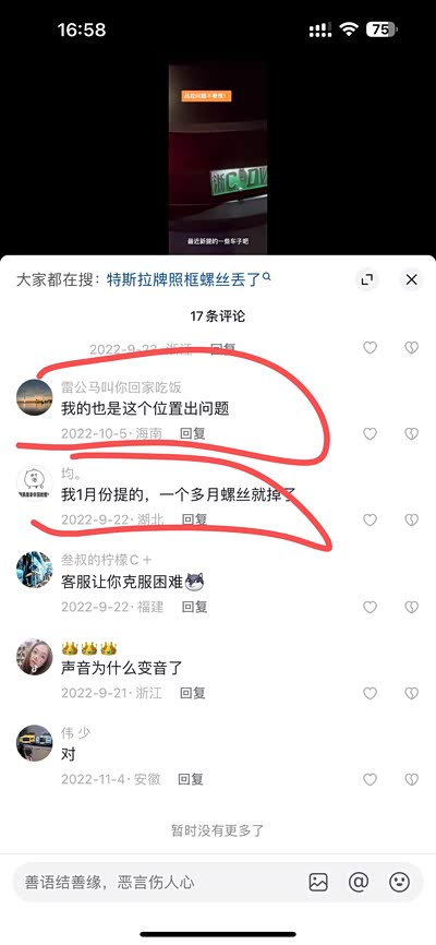 一直到我码文到这里,我并不认为这是我人为造成的损坏,即使我有责任,车的牌照框也一定有质量问题,七个好拧,1个进不去足以说明问题了。我又不是一个人安装,还有人证,甚至还有监控可以作证,十分钟,一个螺丝扣,没有任何的暴力操作。特斯拉何以判定? 如此这般独裁,甚至连淘宝的售后服务都不如,是因为没有第三方可以监管,一切都是他们说了算嘛?
