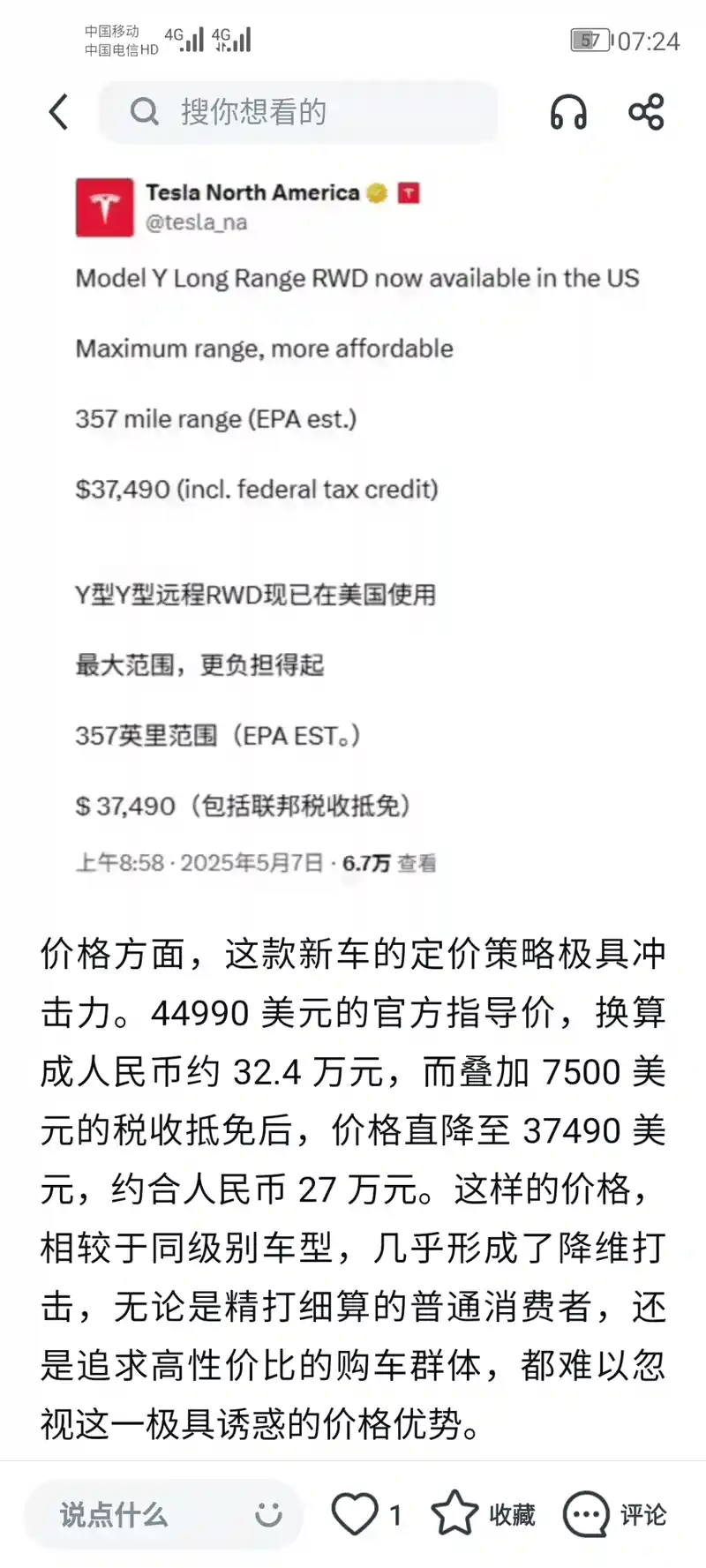特斯拉国内会不会出后驱长续,反正美国出了 删除 推荐精华 置顶 取消置顶 关闭回复 打开回复 推荐编辑 楼主禁言 移动帖子 重置头像 操作记录 让子弹飞2620秒 0浏览 · 2025-05-08 09:34· 发布于广东 其实这个非常射中我的需求 举报 打开汽车之家 阅读体验更好 精彩热门 更多 本田CR-V提车记分享 银河M9提车作业分享 朗逸星空版提车作业 骓1200使用体验分享 摩托车运动相机怎么选 第一台弯梁的诞生 查看更多 打开汽车之家 互动体验更好 微信好友 微信朋友圈 新浪微博 QQ好友 QQ空间 取消 相关推荐 加载中