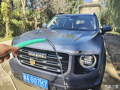 水压不大,但是足够了,因为我们有足够的时间去一点一点清理,水源充足的情况下,没有洗车泡沫也是可以将大狗清洗干净的,我习惯用细流一遍重刷一遍擦拭,这样擦掉的泥灰就会重刷而下,最后再用清水重刷一下,鹿皮巾直接擦拭,这样整个车身也就亮晶晶了。