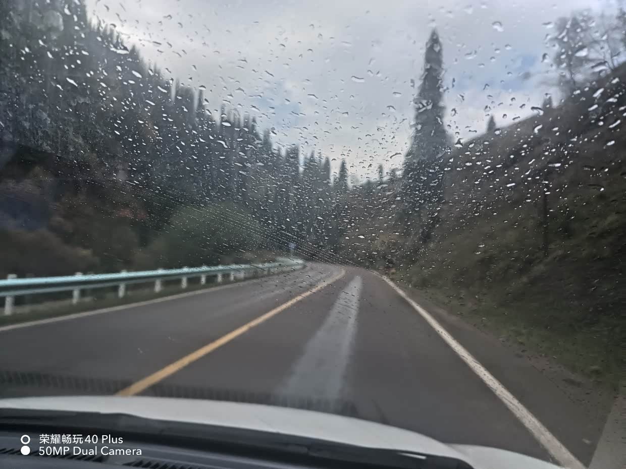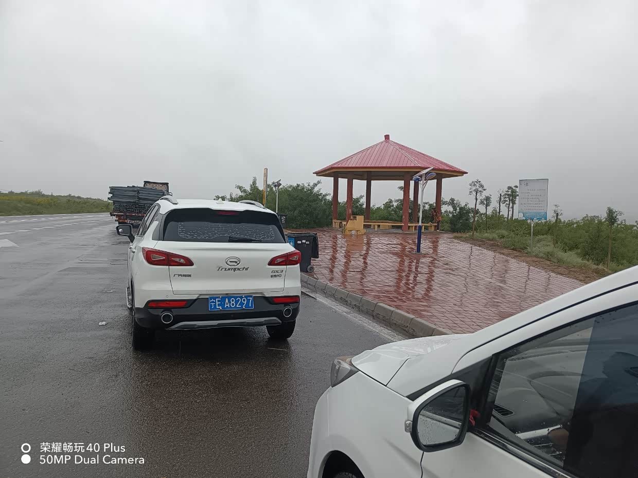 一路上小雨不停,在一个服务区晴了一小会的天,上了高速又开始下。