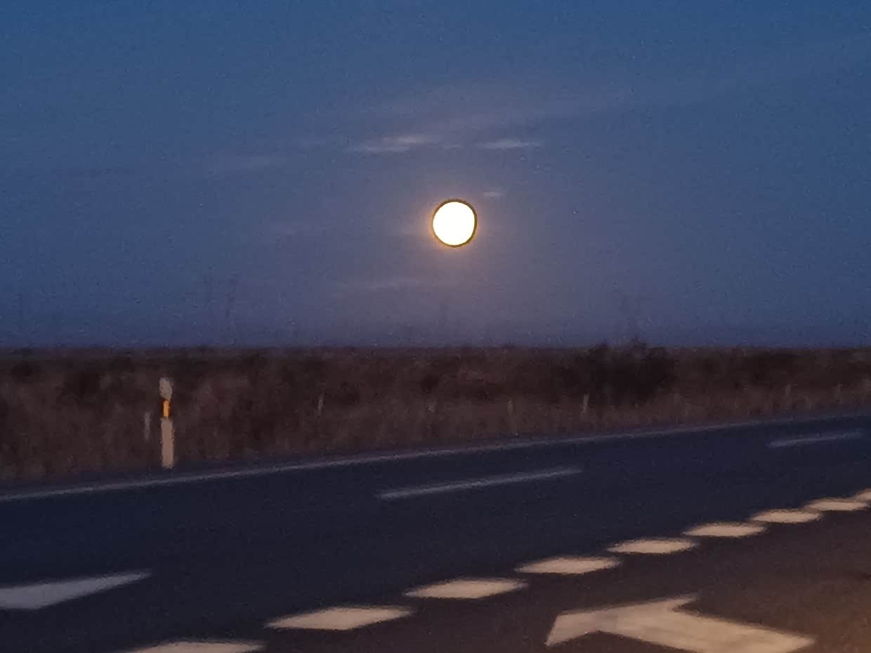 9月18日,早上5点出发,圆圆的月亮还挂在天边,高原的月亮又大又圆。