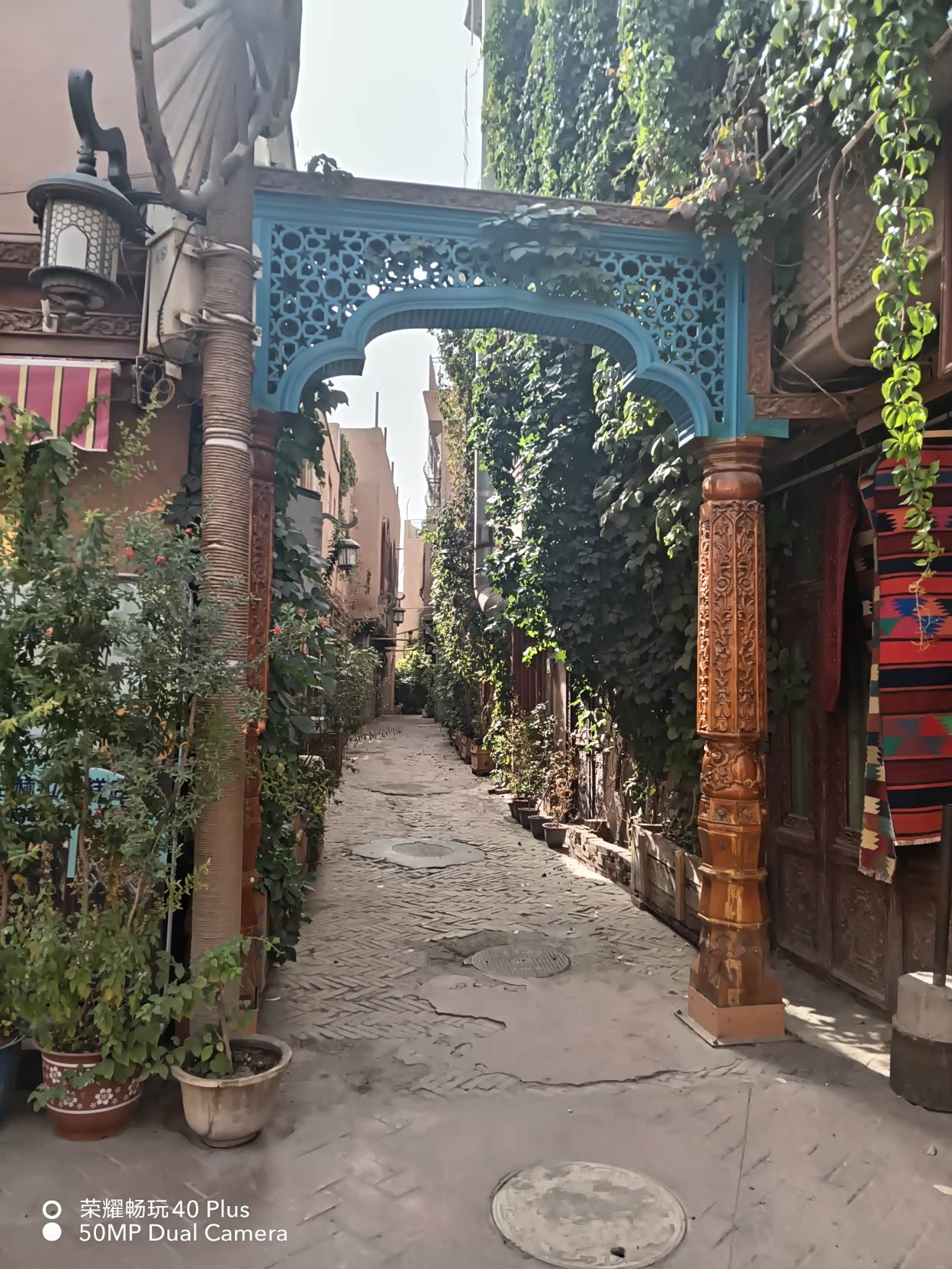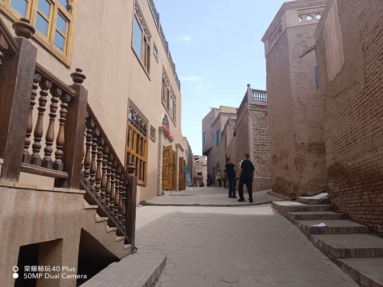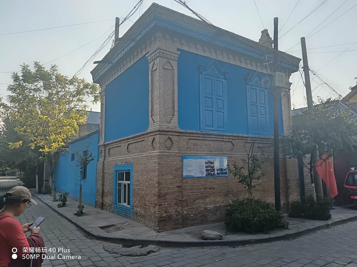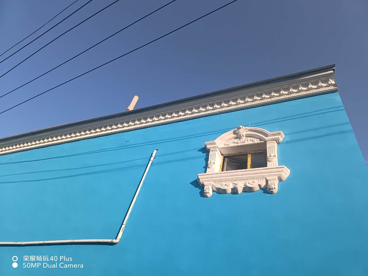 哈萨克族崇尚蓝色,所以古城里的房子大都是蓝色基调。
