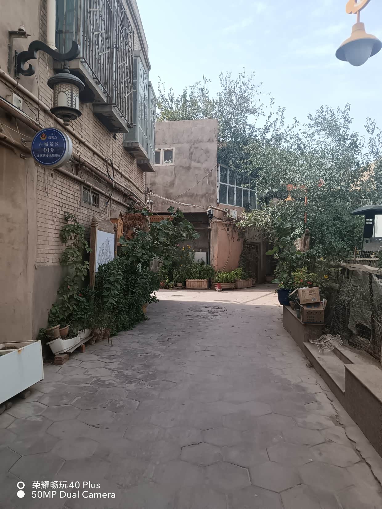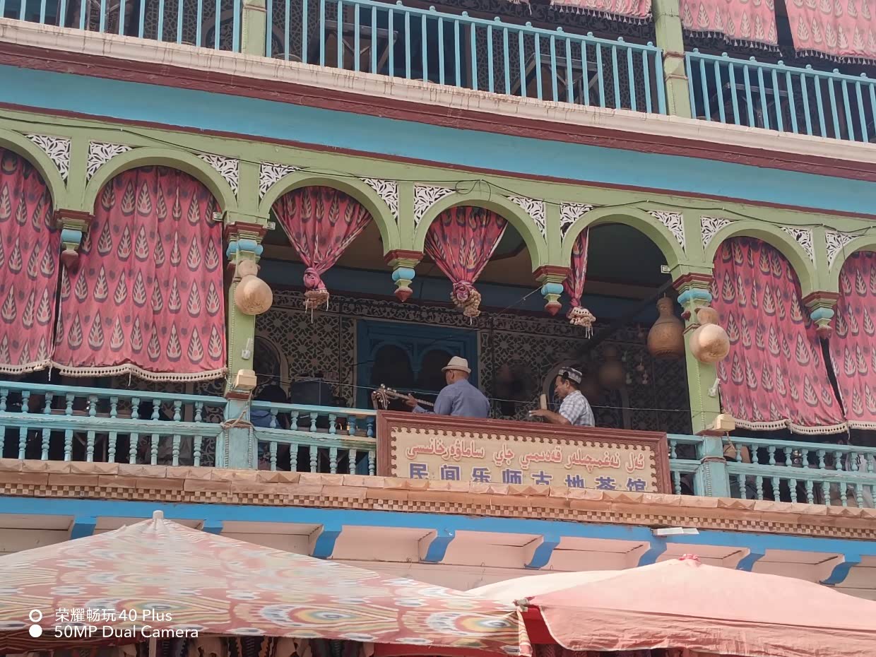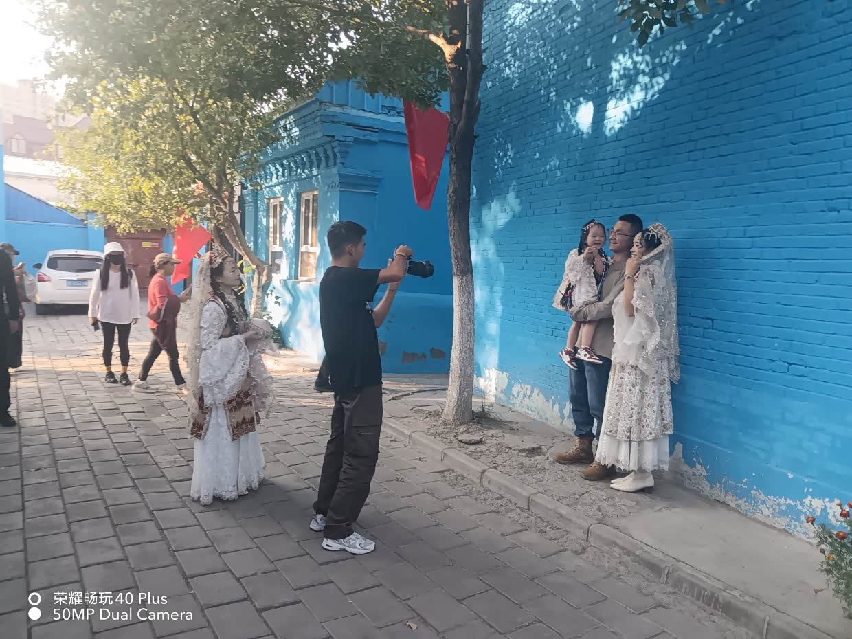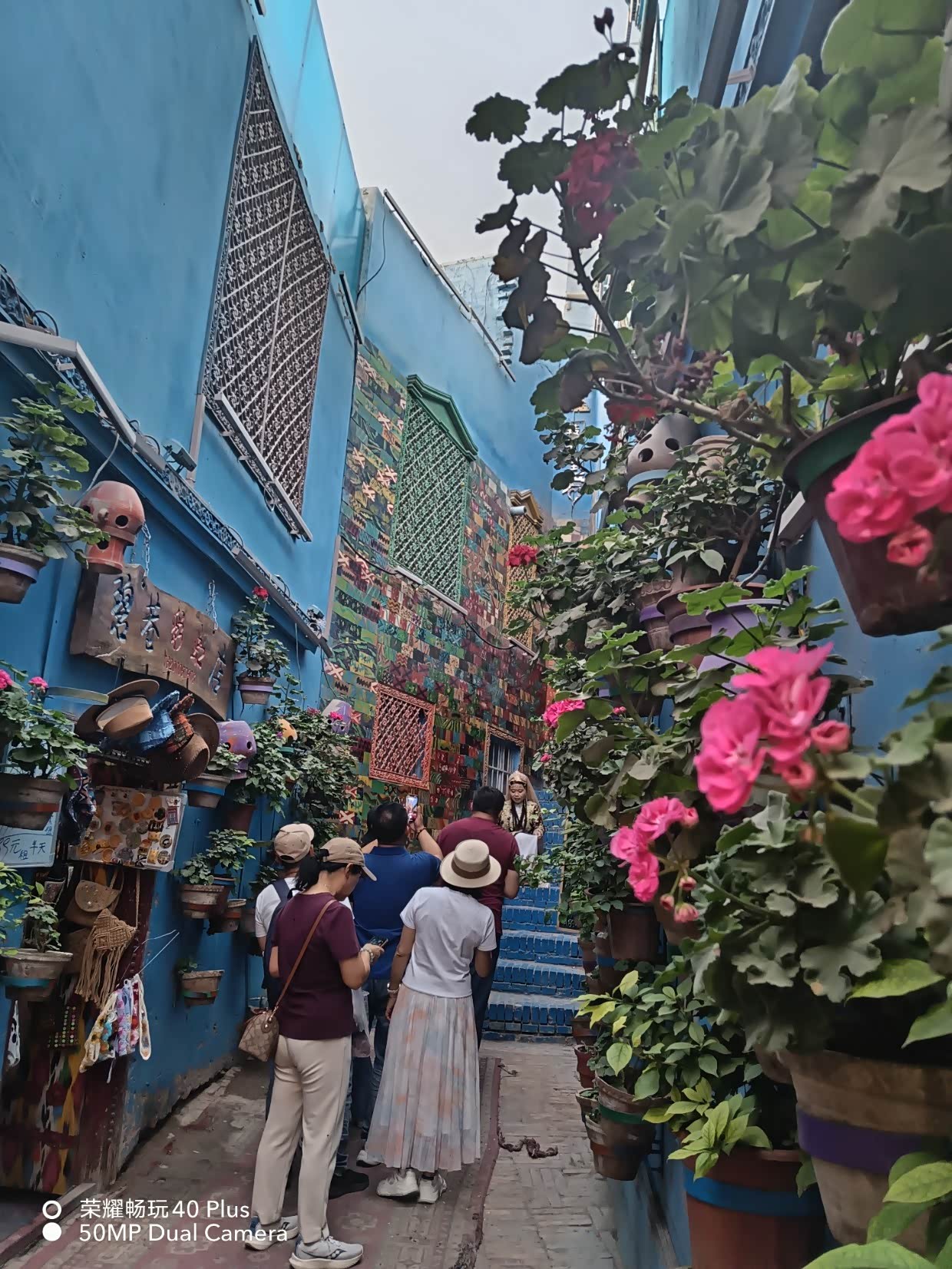 哈萨克族崇尚蓝色,所以古城里的房子大都是蓝色基调。