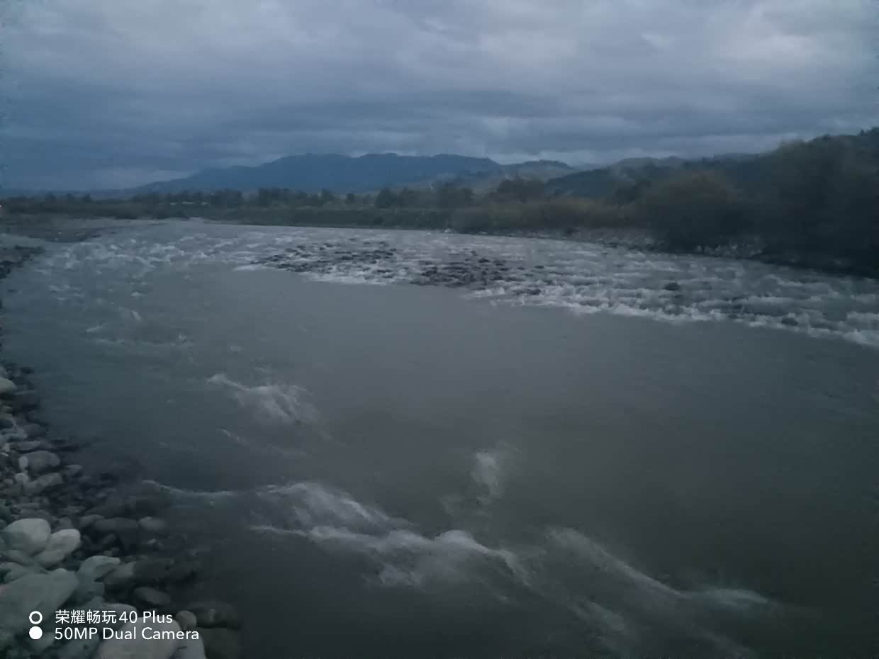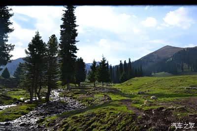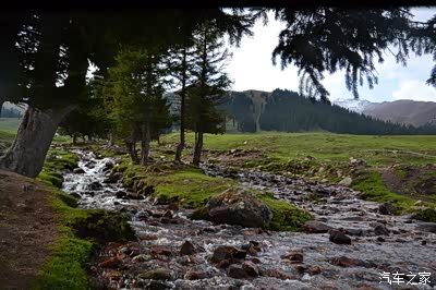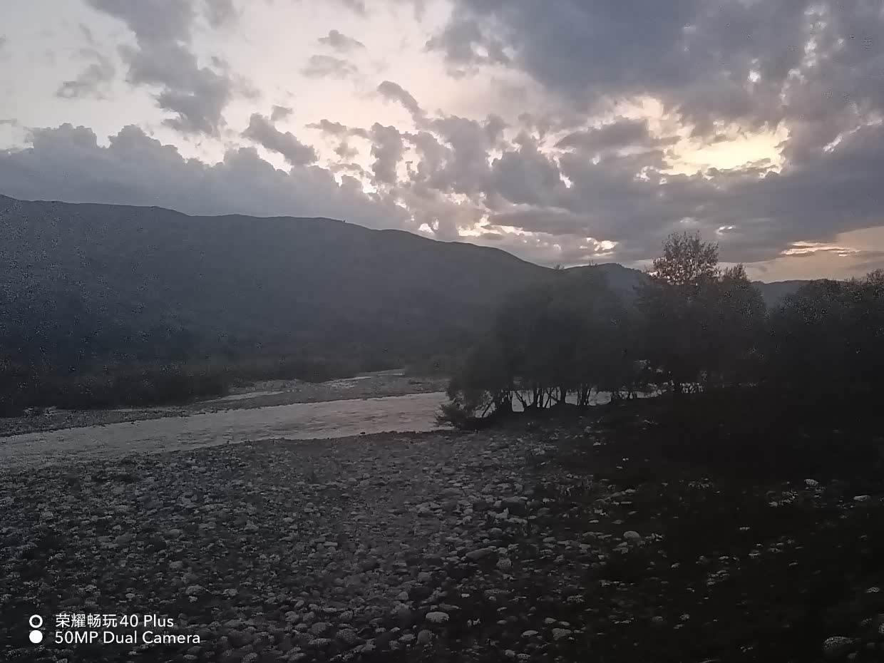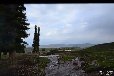 那拉提景区就在河的对面山上,现在天很阴,不知明天天气如何。